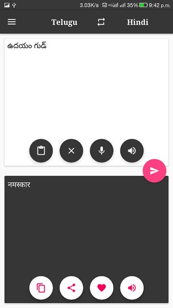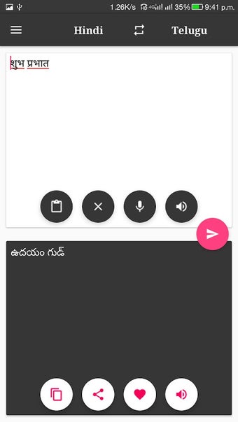Kullanımı kolay bir arayüze sahiptir, bu nedenle Telugu'dan Hindi ve Hindi 'den Telugu'ya metninizi çevirmek için bu uygulamayı kullanmaya başlayabilirsiniz.